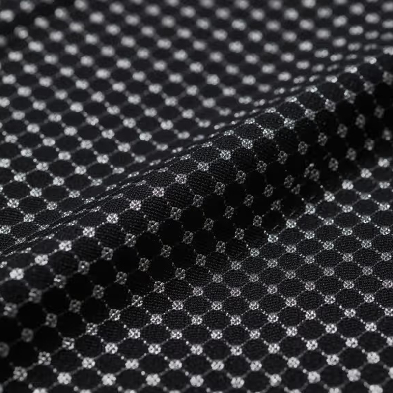 ドットメッシュバーズアイクロスは独自のドットメッシュホール構造を採用。従来のバーズアイクロスと比較して、ドットメッシュバーズアイクロスの穴はより細かく、より規則的です。この革新的なデザインにより、生地の通気性と発汗機能が大幅に向上し、空気の循環がスムーズになり、汗が素早く蒸発して着用者をドライで快適に保ちます。激しい運動でも暑い季節でも、ドットメッシュバーズアイクロスは汗の滞留を効果的に防ぎ、理想的な快適な体験を提供します。ドットメッシュバーズアイ生地は、その通気性と吸湿性と発汗性能により、スポーツウェア、夏服、日常のカジュアルウェアの製造に非常に適しています。ドットメッシュバーズアイ生地の軽い質感と快適なタッチは、スポーツ愛好家やアウトドアアクティビティを愛する人に適した、長期間の着用に最適です。ランニングウェア、ヨガパンツ、フィットネスウェアなどのスポーツ用品でも、夏のTシャツやショートパンツなどの軽量衣類でも、ドットメッシュバーズアイクロスは究極の快適さを提供し、長時間の運動や高温での着用による不快感を回避します。