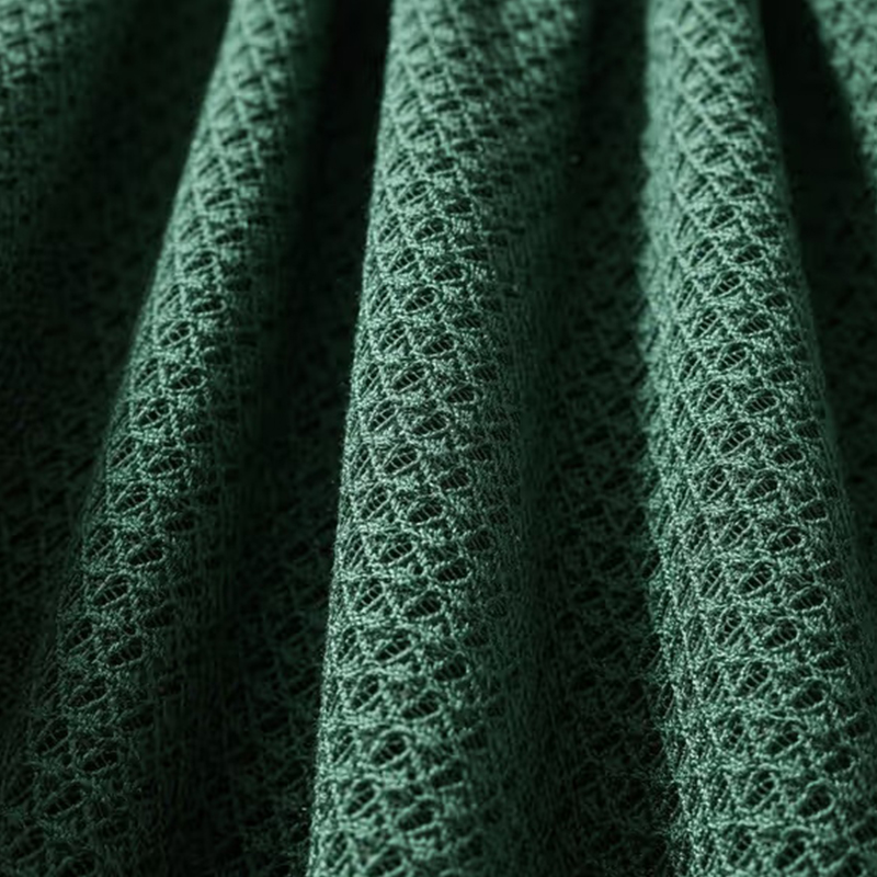 ポリエステルの伸縮性を織り交ぜたバーズアイ生地は、スポーツ、夏服、アウトドア用品、カジュアルウェアのニーズを満たすように設計された生地です。独自の織り交ぜ織りプロセスを使用したこの生地は、伝統的なバーズアイ生地の通気性と吸湿発散性を維持しながら、生地の強度と耐久性を高めています。表面は小さな穴で構成されており、生地に独特の視覚効果を加えるだけでなく、通気性を向上させ、汗を素早く排出し、着用者をドライで快適に保ちます。スポーツ中の高強度の消費でも、暑い季節の日常着でも、一日中快適に過ごせます。