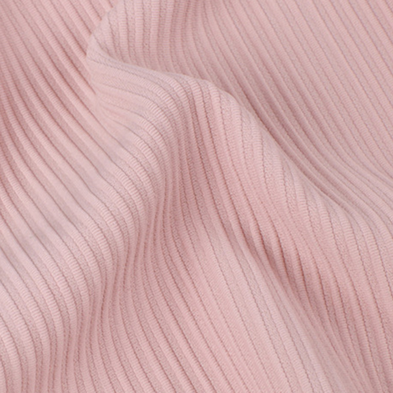 ストレッチコットンストライプ生地は、古典的なリブ織り技術を使用し、カラフルなストライプや絶妙なジャカードデザインを加えたファッショナブルで実用的な生地で、生地の美しさを高めるだけでなく、ユニークな視覚的な重ね着も与えます。この生地は非常に伸縮性があり、手触りが快適で、体にぴったりとフィットする着用に適しており、特に下着、ショルダーストラップ、ファッションアクセサリーをデザインする場合、洗練された鮮やかな外観を簡単に作成できます。ストレッチコットンストライプ生地は通気性が良く、毎日の着用に適しており、特に暖かい季節に着用者に爽やかな感触を与えます。